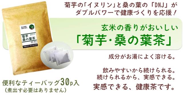 菊芋は、農家さんに契約栽培してもらった農薬不使用のもの。それから、桑の葉と玄米は、品質にこだわりを持つお茶屋さんが選んだ農家さんに、契約栽培してもらった農薬不使用のもの。もちろん、安全性にもこだわっています。