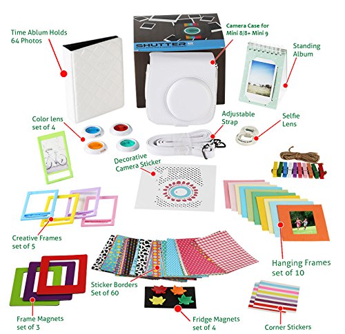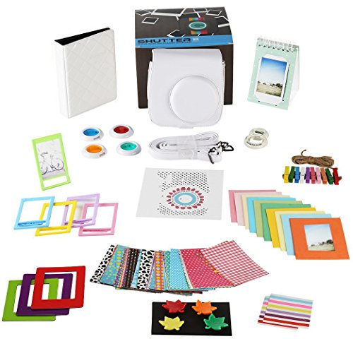 BUNDLE INCLUDES: This Includes an Accessories Kit For Fujifilm Mini 9, Mini 8 & Mini 8+ Custom Fitted CAMERA CASE for the Fujifilm Mini 8/8+ STYLISH ADJUSTABLE STRAP for comfort. Photo Album For Fuji Instax Mini 8 Camera Instan Film ALBUM Holds Instax Mini 64 Photos +Instant Film Accessories, STANDING ALBUM Holds Instax Fujifilm 10 Photos + Instant Mini 8 Accessory CREATIVE FRAMES 5 pcs. Set of 4 Fuji Accessories COLORED LENS yellow, blue, green and red For Instax Mini Camera + Hot SELFIE LENS.