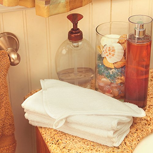 -. Feature : 5 PACK CONVENIENT TRAVEL-SIZED white wash cloths, 8 x 8 inches / LUXURIOUS, ULTRA SOFT, AND NON-ABRASIVE - perfect for cleansing delicate facial skin, these wash cloths remove makeup and thoroughly cleanse acne-prone or sensitive skin, without having to use harsh skin cleansers / LINT FREE - ULTRA ABSORBENT wash cloths feature a silky satin border, and a sewn-in loop for easy hanging, dries quickly after each use / MADE WITH THE HIGHEST QUALITY KOREAN MICROFIBER that is preferred by customers. These spa quality wash cloths are a blend of 70% Polyester and 30% Polyamide microfiber with a weight of 450 Grams per Square Meter (GSM) / EXTREMELY DURABLE - this fabric withstands hundreds of washings and gets softer with time