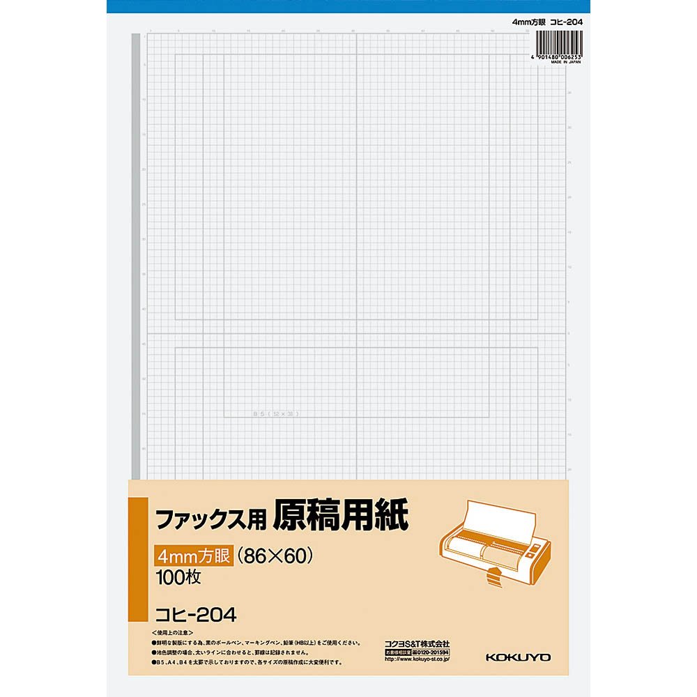 100 pieces of Kokuyo fax for writing paper 4mm grid [Kohinoor-204N] (japan import)