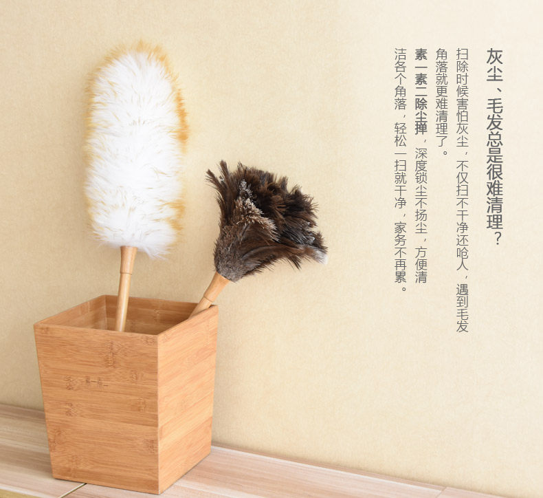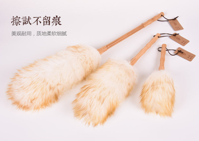产品介绍 扫除时候害怕灰尘,不仅扫不干净还呛人,遇到毛发、角落就更难清理了。 素一素二除尘掸,深度锁尘不扬尘,方便清洁各个角落,轻松一扫就干净,家务不再累。 推荐理由 天然羊毛??有吸湿、抗污垢特性,毛质细腻柔软,防静电,除尘效果好。 楠竹手柄?? 外表精致 手感舒适光滑。 轻松抖落灰尘????搓转掸子,灰尘就会轻易的掸落下来。 特别注意 清洁避免化学试剂侵蚀,远离明火。 |