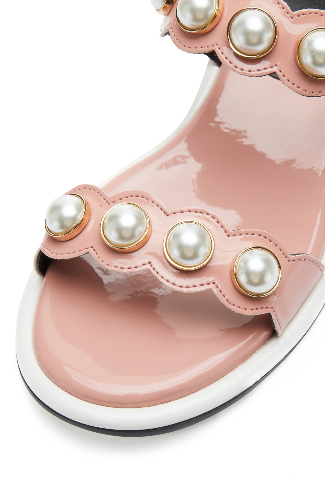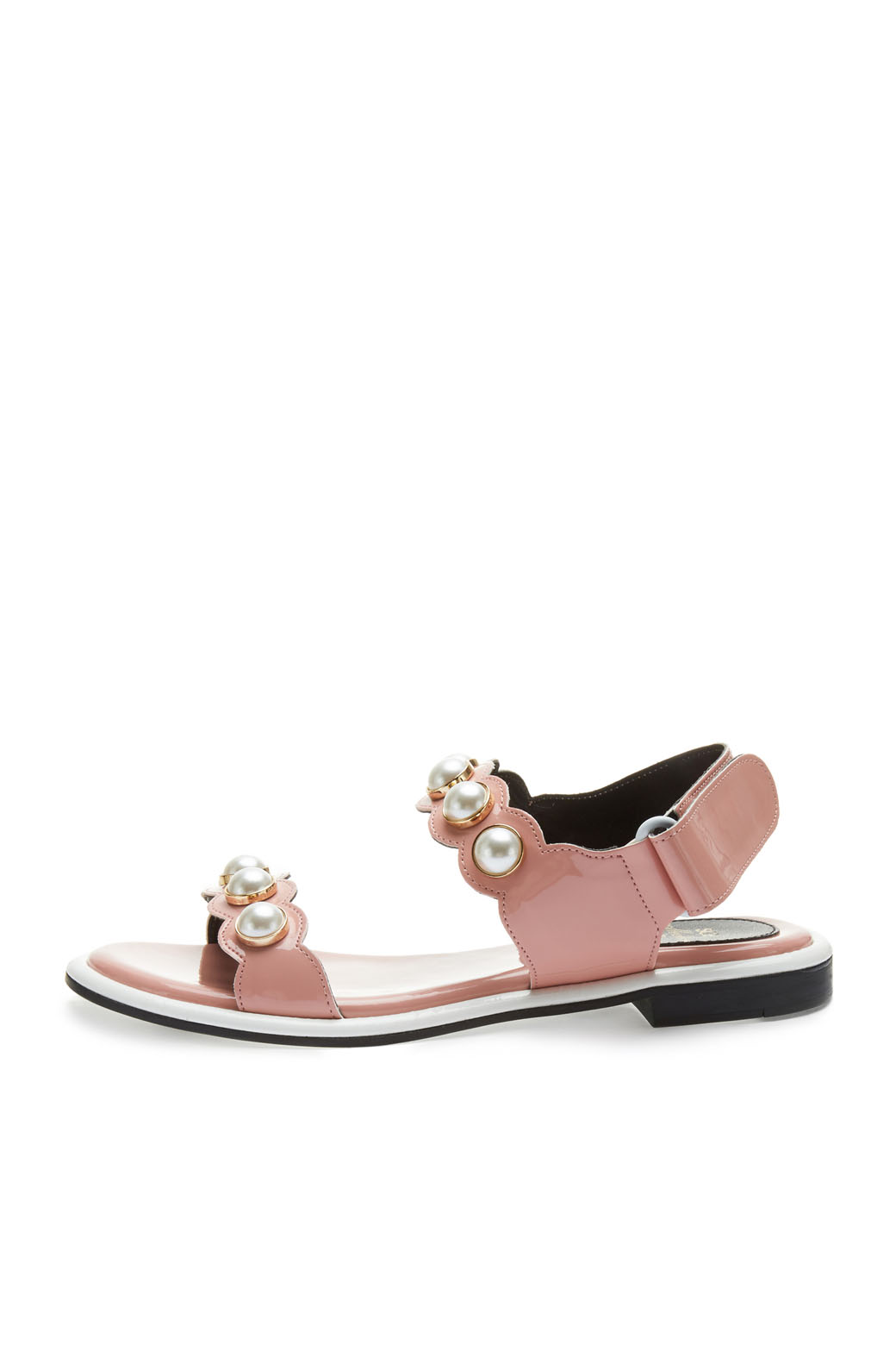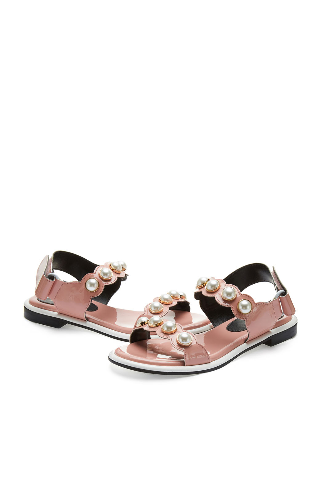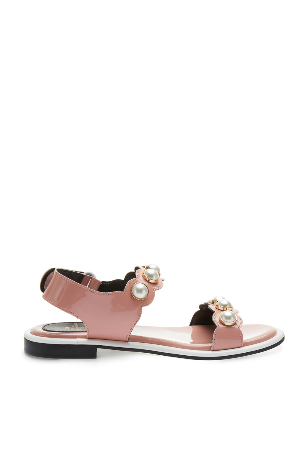 - 발등의 진주 디테일을 적용한 샌들.- 중장 사이드 배색으로 포인트를 더해줌.- 벨크로 스트랩으로 간편한 탈착이 가능.- 심플한 디자인에 디테일로 엣지를 준 스타일로 웨어러블한 활용이 용이함.