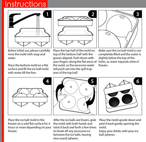 Polar Roks Ice Ball Maker - Premium Quality 4 Sphere Flexible Silicon Mold Tray Kit