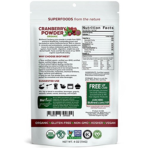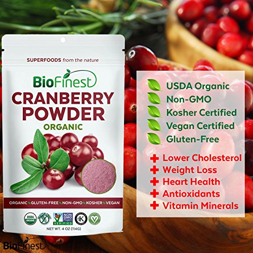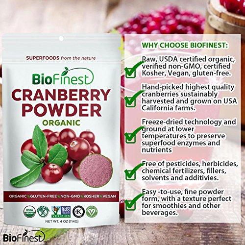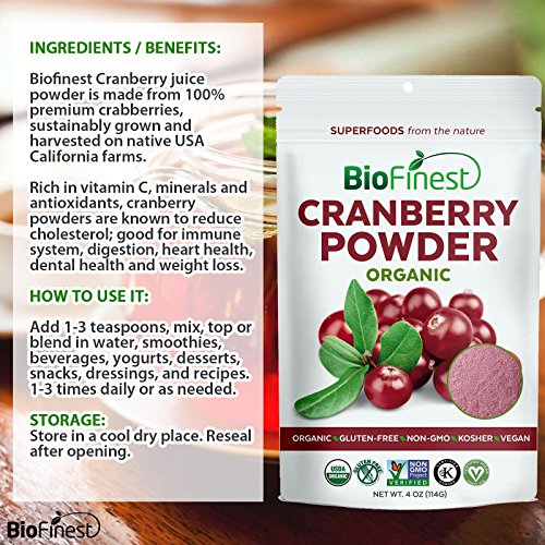 -. Title : Biofinest Cranberry Juice Powder - 100% Pure Freeze-Dried Superfood - USDA Certified Organic Kosher Vegan Raw Non-GMO - Boost Digestion Weight Loss - For Smoothie Beverage Blend (4 oz)