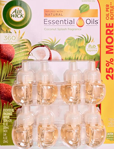 Air Wick Essential Oils Coconut Splash Fragrance, 1 Warmer + 8 Scented Oils