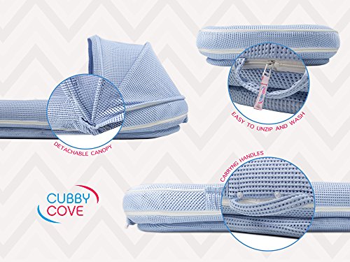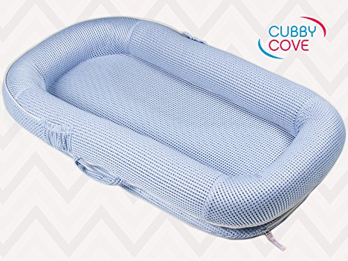 A SNUG LITTLE POD FOR YOUR BABY TO REST, PLAY AND LOUNGE ? SUITABLE FOR 0-18 MONTHS. The CubbyCove is the ultimate soothing environment for your Baby, and great for: Co-Sleeping, Tummy Time, Daytime Napping, Infant Massaging, Diaper Changing, Lounging and Playing. This little eden for your baby is sturdy yet lightweight, it's easy to carry around the house and have your baby next to you at all times. Its design won’t smother, squeeze or squish your little one, we leave that for when you have them in your arms. Also, CubbyCove has a gentle 5º angle, it’s easily washed in your washing machine, made with soft and breathable fibers… Overall a comfortable, warm and cozy environment for your sweet bundle of joy! Designed with love and care, and made with soft, durable and breathable fibers ? Nothing is more important than our little ones well-being, and therefore every last detail was taken into account with the design of the CubbyCove. It’s truly breathable like no other available on the market. Designed and Built with High Quality Soft 3D Mesh Fabric, which is known worldwide for its amazing properties of High Permeability, Durability, Compression Strength, Breathability, Pressure Redistribution and Anti-Bacterial. The outer cover has the same principals but made to be very soft, cushiony and gentle for your baby. A Supervised Environment for Tummy Time - We are all aware of the benefits of Tummy Time, helping babies strengthen their head, neck and upper body muscles, as well as building coordination for rolling over, crawling and more. But, since the AAP recommends that babies sleep on their backs for safety reasons, finding time and a safe environment for them can be challenging. The CubbyCove comes second only to a Mother's Warmth! So go ahead and click add to cart today! Your baby will thank you for it! 0 |