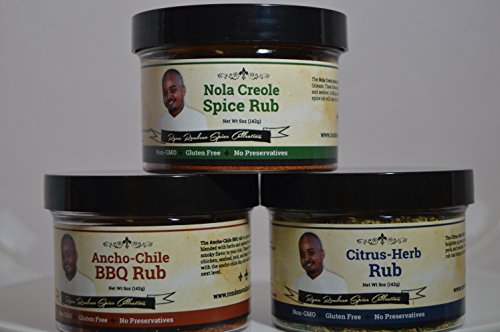 Spice it up with the Ryan Rondeno Spice Collection: Collection includes 3 versatile spice blends. The Nola Creole Rub, Ancho-Chili BBQ rub, and the Citrus Herb Rub.