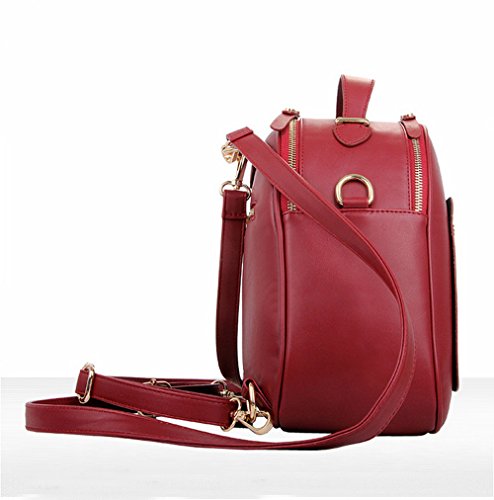 -. Feature : Selected high quality faux leather / Size Approx: 9.8"(L)*9.8"(H)*5.1"(W) / It can be used in different occasions:school, travel, hiking, camping or street / Adjustable shoulder straps, you'll have plenty of options for carrying your satchel handbag.: tote, shoulder bag, backpack / 2 zipped compartments on the long sides, 3 inner compartments, one with a zip and a zipped exterior pocket