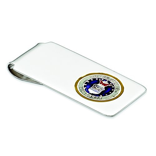 Product Description Sterling Silver U.S. Air Force Money Clip, blue background (Enamel, Engraveable, Polished, Solid, Sterling silver) - Approximate Length: 52 MM - Approximate Width: 25 MM 0
