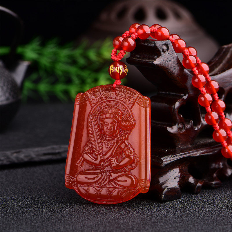 红玛瑙虚空藏菩萨吊坠生肖属牛虎本命佛守护神项链男女款