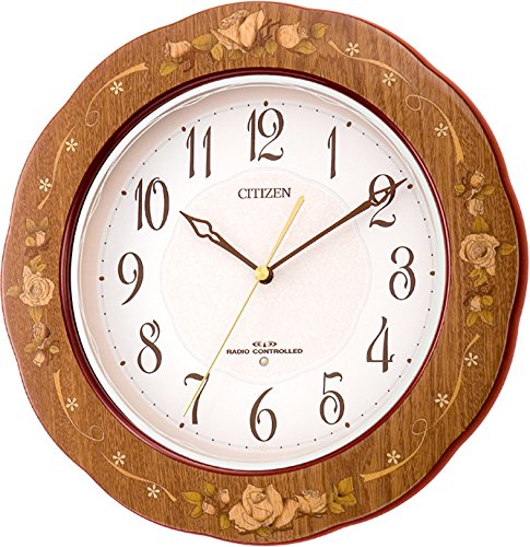 -. Title : CITIZEN(リズム時計) 高級象嵌細工電波掛時計 プリュマージュM756F 茶色 4MY756-N06
