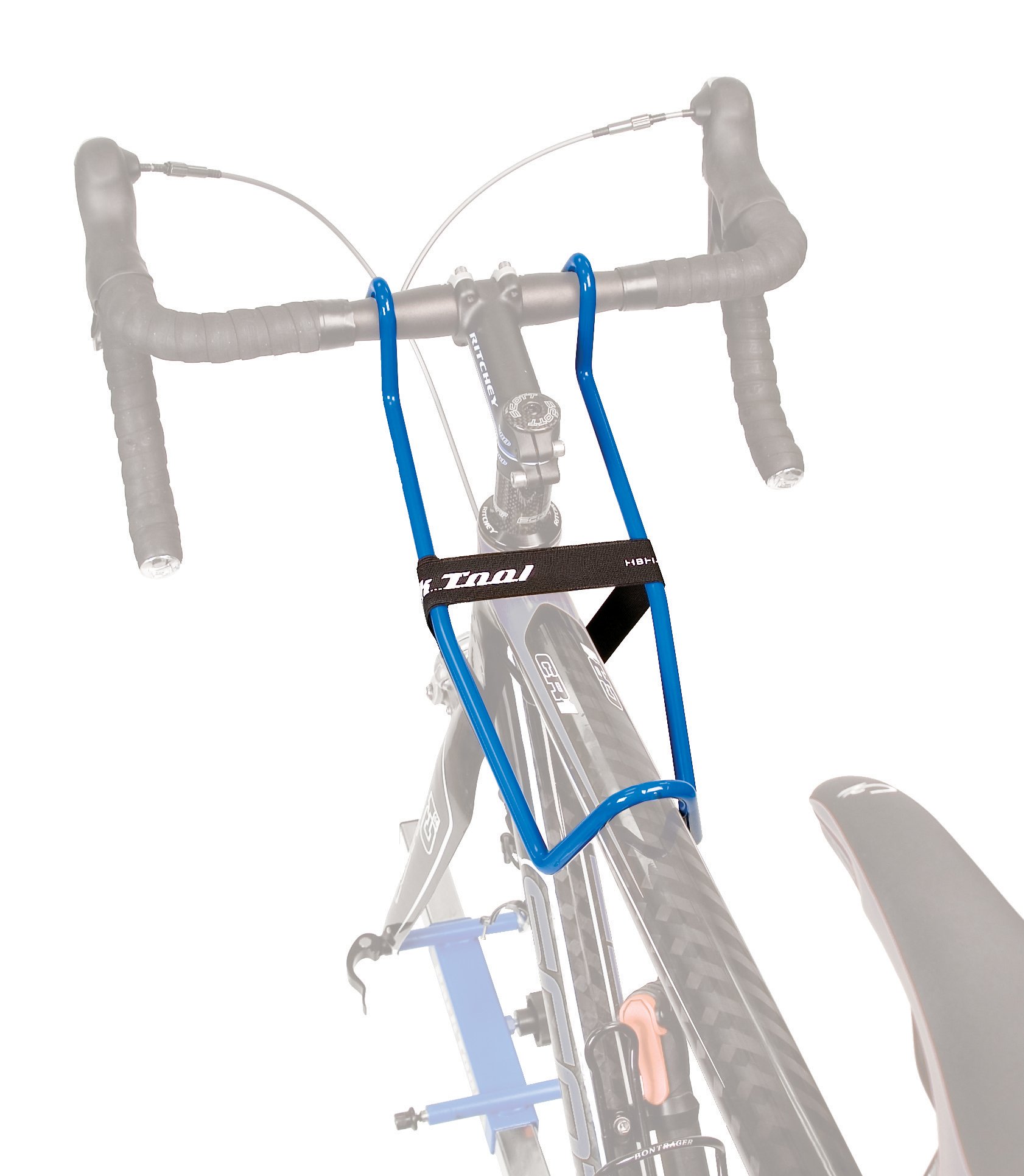 Holder for fixing the handle and the front side so that it will not move inadvertently when setting the bicycle on the repair stand.