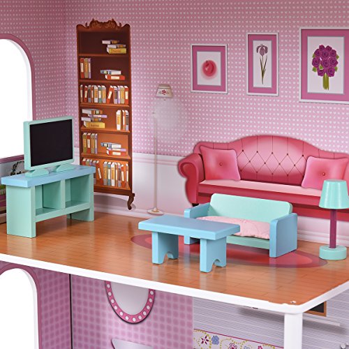 -. Title : Costzon Big Dollhouse, Wood Loving Family, Doll Cottage with Furniture, Pink