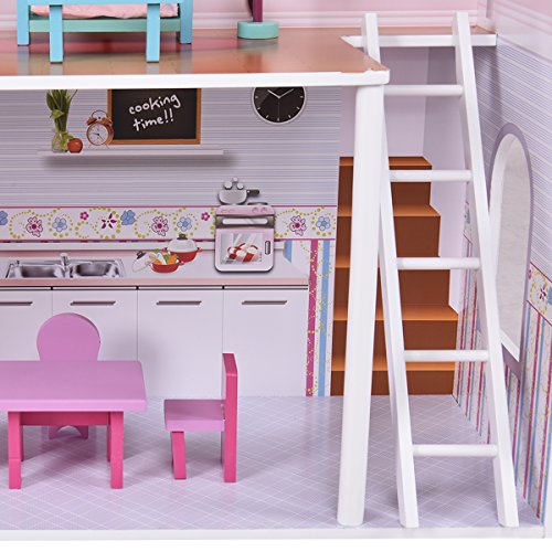 -. Feature : Premium & Safe Material - Constructed by solid pine wood and MDF, our Costzon big doll house is durable and stable for your children to play. Plaint in environmental-friendly paint which features no harmful odor so that your children can play it freely. This heavy, durable play set will stand up to years of wear and tear. / Three-floor and four rooms - Costzon pink doll house is perfect for any young girl with a wild imagination. It has 3 layers with 4 rooms: bathroom, kitchen, living room and bedroom. Set the scene for your children to dream up role-play scenarios and imitate everyday life. / Realist Details - Some essential furniture like dining table and chair set, bathtub, TV, cabinet, floor lamp, bed, ladder, etc. are all made of wood. / Great Gift - The doll house provides numerous opportunities for interactive and imaginative play. It is an ideal present for your kids' birthday, Christmas! They will love to play with their friends and become more active. / WORRY FREE PURCHASE- We at Costzon stand behind our products with our Satisfaction Guarantee. We not only offer qualified products with favorable price to our customers, but also great customer service.