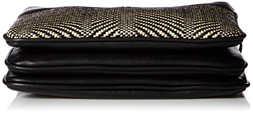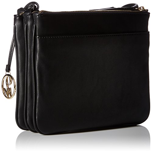 Interior features lining; triple compartment design with center kiss-lock compartment and 2 zip compartments; accommodates iPhone 6 plus or smaller and similiar