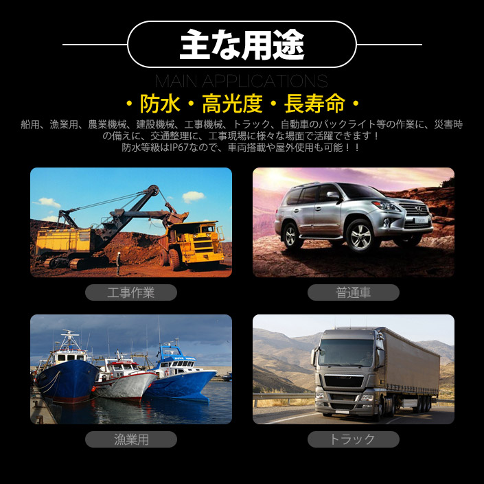 ●漁業・船舶・農業機械・建設機械・工事作業車等の作業灯に。