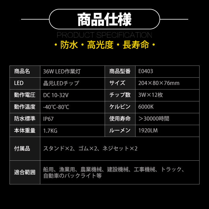 ●タイプ : LED作業灯(10V-30V対応)