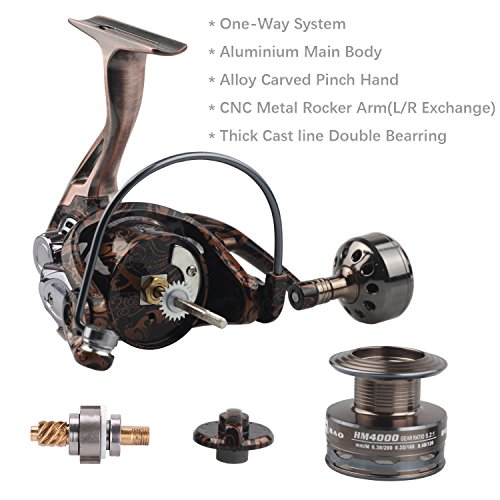 -. Feature : 2017 New Arrived ! Spinning Reel is light, smooth, powerful. / 13 + 1 corrosion resistant deep-race smooth ball bearings, instant stop anti-reverse, CNC machined aluminum handle. / Amazing aerospace-grade aluminum honeycomb design spool gives you strength and light weight.spinning reels are equipped with: precision brass gears, hardened metal main shaft, triple disc carbon drag washers, and interchangeable right or left hand CNC machined aluminum handle. / Flawless light weight alloy spinning reel body with rich black finish is corrosion proof / The best thing about a Modenpeak Spinning Reel is its great features at an affordable P.R.Ice.