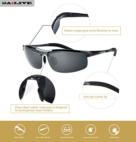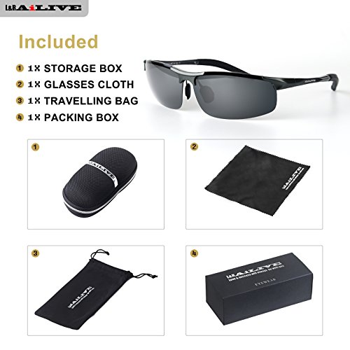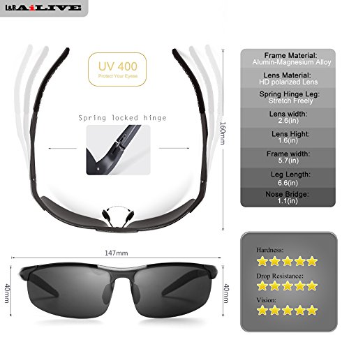 METAL FRAME: Al-Mg alloy is lighter than most metals. These sunglasses are totally 0.88oz weight. The frame is also durable.