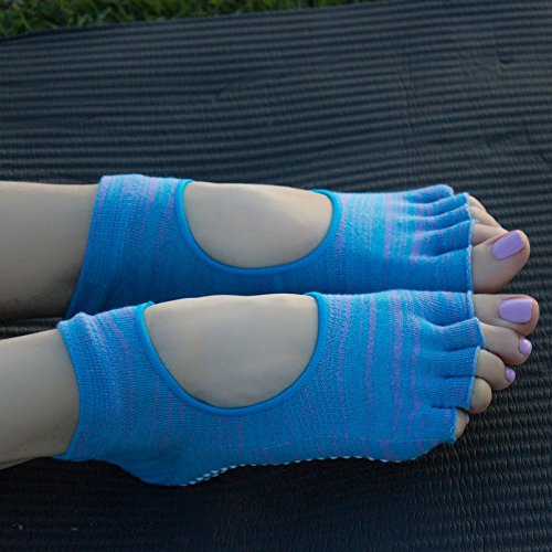 -. Feature : UNIQUE COLOR DESIGN: Stand out from the rest of the group with these colorful cool designs on a premium soft cotton sock / OPEN TOE DESIGN: Toeless design gives you the ability to spread your toes and feel the mat. Keeping you cool and covered at the same time! / ERGONOMIC GRIP PLACEMENT: Different size grips throughout the whole foot following the natural arch of your foot / MULTI FUNCTIONAL: Ideal for hot yoga, pilates, Bikram, Aerial Silks, Gymnastics, trampoline parks, dance and more! / COLOR OPTIONS: Purchase a single pair or a pack of multiples to make sure you always have a pair handy! (Purple, Black & Gray, Coral, Blue & Pink)