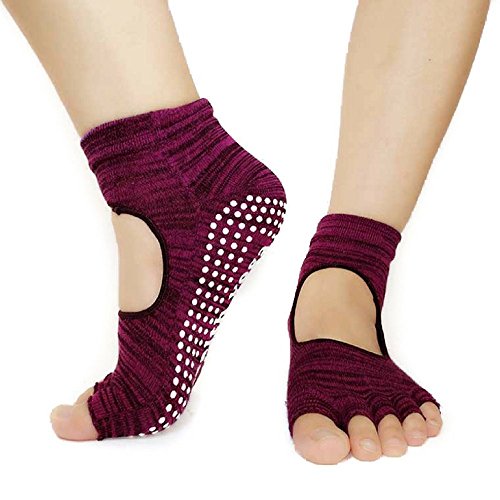 -. Feature : UNIQUE COLOR DESIGN: Stand out from the rest of the group with these colorful cool designs on a premium soft cotton sock / OPEN TOE DESIGN: Toeless design gives you the ability to spread your toes and feel the mat. Keeping you cool and covered at the same time! / ERGONOMIC GRIP PLACEMENT: Different size grips throughout the whole foot following the natural arch of your foot / MULTI FUNCTIONAL: Ideal for hot yoga, pilates, Bikram, Aerial Silks, Gymnastics, trampoline parks, dance and more! / COLOR OPTIONS: Purchase a single pair or a pack of multiples to make sure you always have a pair handy! (Purple, Black & Gray, Coral, Blue & Pink)