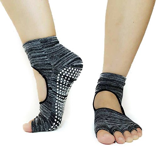 -. Feature : UNIQUE COLOR DESIGN: Stand out from the rest of the group with these colorful cool designs on a premium soft cotton sock / OPEN TOE DESIGN: Toeless design gives you the ability to spread your toes and feel the mat. Keeping you cool and covered at the same time! / ERGONOMIC GRIP PLACEMENT: Different size grips throughout the whole foot following the natural arch of your foot / MULTI FUNCTIONAL: Ideal for hot yoga, pilates, Bikram, Aerial Silks, Gymnastics, trampoline parks, dance and more! / COLOR OPTIONS: Purchase a single pair or a pack of multiples to make sure you always have a pair handy! (Purple, Black & Gray, Coral, Blue & Pink)