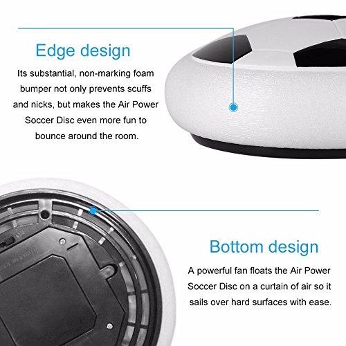Studio : Gloween Publisher : Gloween Binding : Toy Product Description [Feature:] 1.This product is made of ABS material, not acrylic material. 2.The ball can give out fluctuant colorful LED light when playing. 3.Gloween hover soccer can be suspended in the air, and kick up very easily. 4.It is a nice toy or multiplayer game prop for family to play together. [Specially designed for safety and fun:] - Pneumatic Suspension Technology Made of Non-toxic plastic, foam edging,flexible, safe and not hurt foot,to prevent the walls and furniture to be damaged.Perfect size enough for small kids or pets to play with. - Built-in Driving Motor The hover ball is equipped with a rational driving mode that will start working as soon as the power switch is on, so that air circulation will be produced with the influence of the fan. [This magical toy will be your new choice:] - Body and Eye Exercise When playing the ball, kids will get both their body and eyes into exercise, which can relax not only the body status but also the optic nerves, benefitting kids' health. - Team Spirit Inspiration The team game can help your kid to build good relationship with other kids, enhancing intimacy and bring more fun. - New Pet Toys Say bye with unhappy, back to the previous joy, it is still your first love. Your pet will be attracted by colored hover football, join it, play together, get happy again. [How to use:] - Use the little screwdriver to open the battery cover. - Install 4 "aa" batteries to the Battery case and put the cover on. - Switch the power button at the bottom, place it on a smooth surface and give it a little kick! [Specification:] Recommended Age:3-15 years old Color:White Material: Non-toxic plastic [Package details:] Product size:18*18*5.5cm Color box size:19.5*19.5*7.5cm