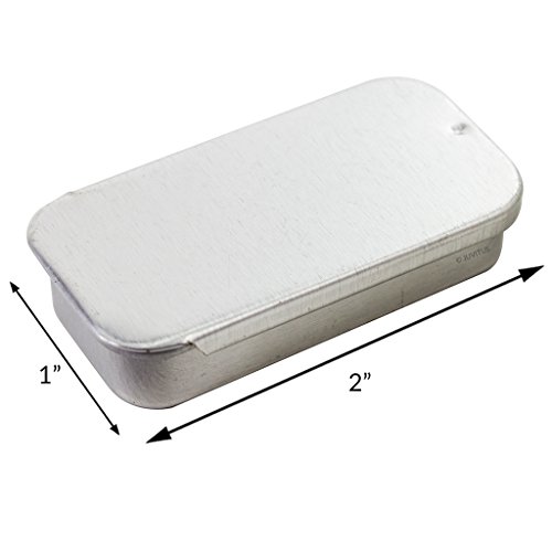 Set of 5 Rectangular tins with slide tops are a versatile packaging container choice for many products such as lip balms, homemade diy projects, wedding favors, sewing kits, and more! Add your own creative label or decorate the tins to your liking, and you'll have the perfect packaging container for your products. The covers slide and snap in place when closed to keep sealed.Feature