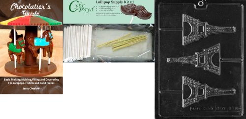 Cybrtrayd "Eiffel Tower Lolly" Miscellaneous Chocolate Mold with Chocolatier's Bundle, Includes 25 Lollipop Sticks, 25 Cello Bags and 25 Gold Twist Ties