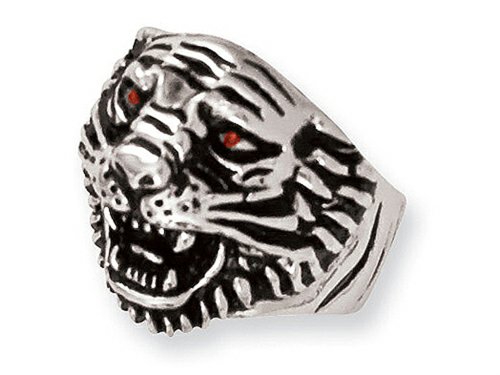 The impressive Stainless Steel Ed Hardy Roaring Tiger w/Red CZ Eyes Ring. Metal weight may vary with finger size and metal choice.