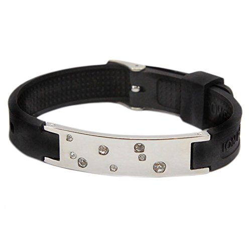 -. Feature : PAIN RELIEF: Extra Strength Magnets (3500 Gauss Each) and Germaniums. Enjoy more effective pain and inflammation relief! / PURE STAINLESS STEEL and SILICON BAND, CUBIC ZIRCONIA / ELEGANT: Very stylish, no one would even suspect that it's therapeutic! / POINTS: Target pain and inflammation. Improve Immune system and more. Works complimentary with other magnetic therapy products. / INCLUDED: Velvet gift bag make a great present for any occasion.