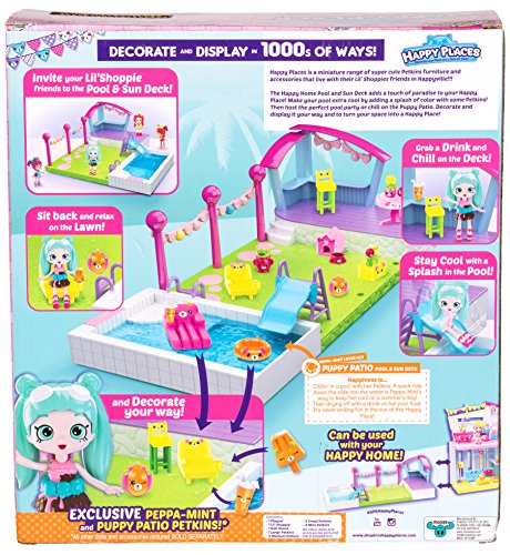 The Happy Places Pool & Sun Deck connects and extends the Happy House, or can be a standalone playset for all your Lil' Shoppies and Petkin Furnitures