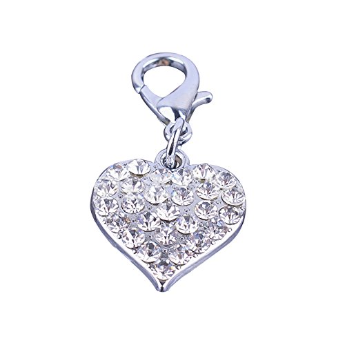 (Braceus)/Pet Supplies/Collars, Harnesses Leashes/DIRECT FROM USA/Braceus Love Heart Cute Pendant Bling Rhinestone Inlaid Pet Dog Collar Necklace Charm Silver