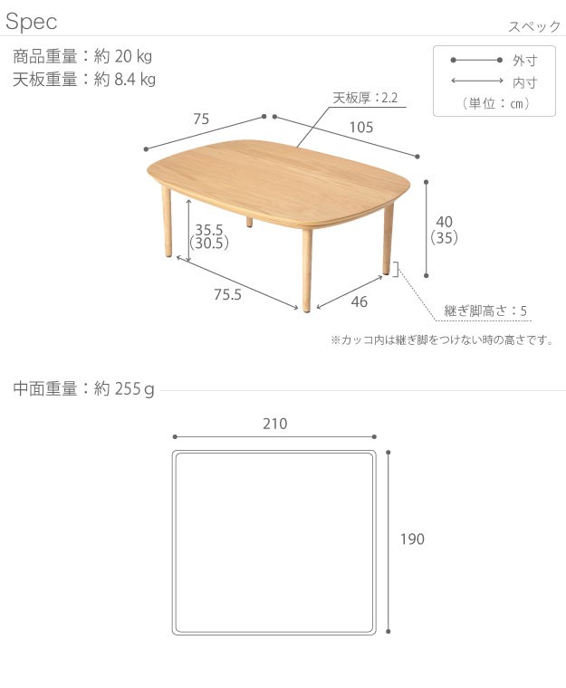 天板サイズ:幅105x奥行75cm・厚み22mm・約8.4kg