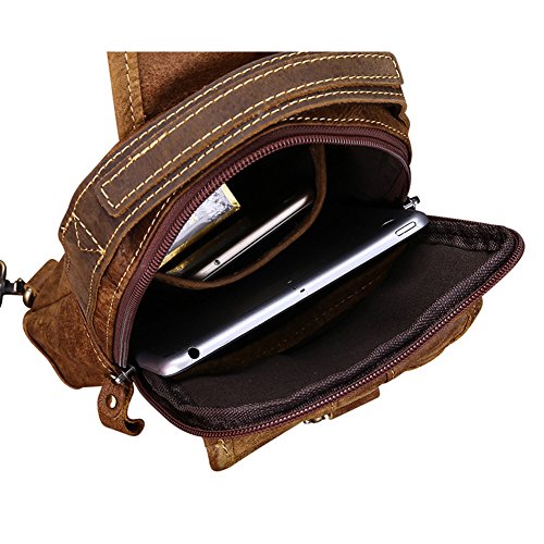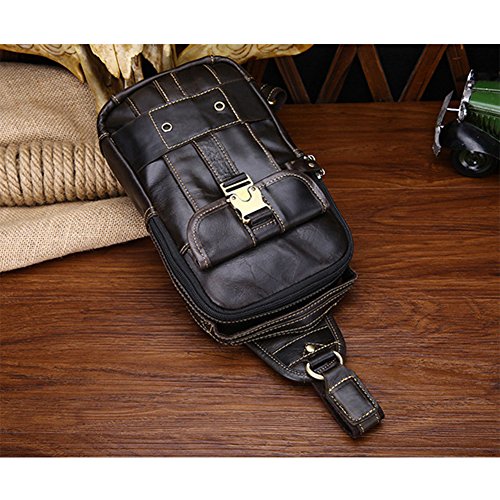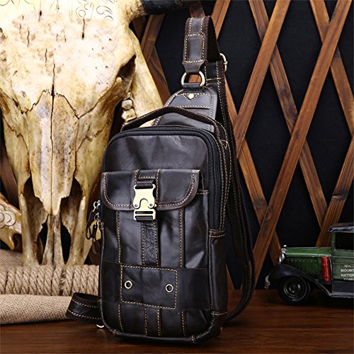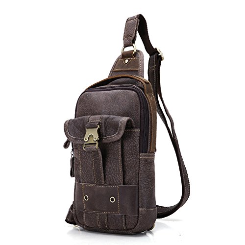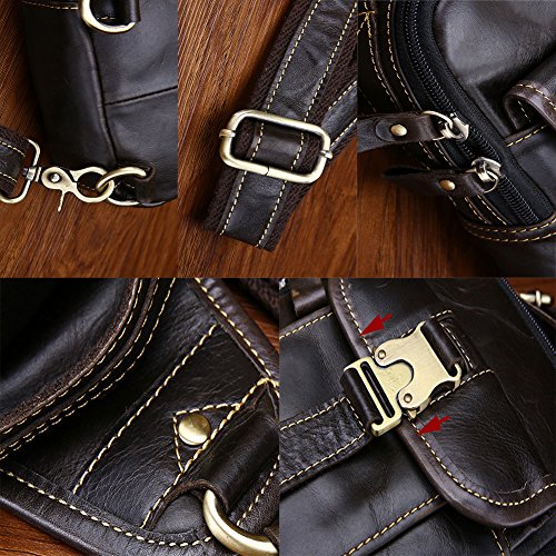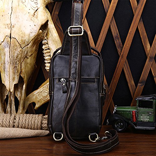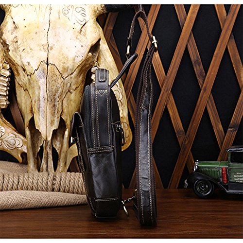 -. Feature : Mateails: 100% Genuine?Leather.The messenger sling bag is made of high quality full-grain leather,the best leather soft and durable.Sleek and elegant mercerized fabric lining protect the stuffs well. The adjustable shoulder strap is also made of genuine leather and soft canvas to eliminate shoulder fatigue, when you wear it you will feel very comfortable. / Dimension: 25*15*5 CM (L*H*W).This chest bag is a mini backpack, but it is a great size to take to a day trip or shopping. The bag can be either carried with the D ring or adjustable shoulder strap. Weight: approx. 460g. The full length of the strap: approx. 51in. / Mutifunctional Pockets: The cross body bag is practical and multifunctional. 1*zippered pocket is in the front flap for tickets, passports or 3.5" wallets&card holder.Magnet buckle about 8" deep for sunglasses in case, bottles and umbrellas. 1* main zippered roomy compartment with 1 inner zipper pocket and 1 inner slide-in pocket for phones, wallets ,books, Kindle, iPad(Up to 9.7").1*zippered pocket on the back for money, wallets, keys, ID cards. / Multifunctional Usage: 3 in 1, Transform your multipurpose bag from chest bag/ shoulder bag / crossbody bag to a backpack. It`s a 3 way bag, you could wear it in anyway you like.It`s safe , stylish, handy, lightweight and comfortable. / Protect your valuables when you're on the go with this sling bag This sling bag is made from top-grain leather and features slash-proof construction with an adjustable strap that can be slung across the body or attached to a post or a chair.