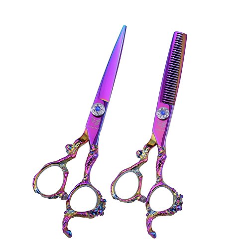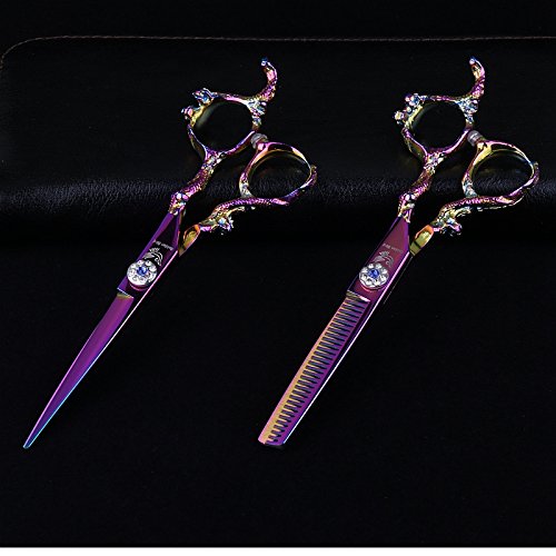 Golden Bird 6” Professional Dragon Style Razor Edge Hair Cutting and Thinning Scissors-Multicolor