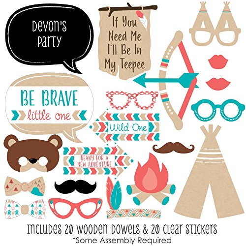 Studio : Big Dot of Happiness, LLC Publisher : Big Dot of Happiness, LLC Binding : Toy Product Description If you are going to have a photo booth, then having the cutest photo booth props is a must. Our Custom Be Brave Little One personalized baby shower or birthday party photo prop cutouts will help you easily create fun party photos at your party. The photo booth prop kit comes with 20 pieces and is ready for quick assembly. Simply add the included wooden dowels to each prop, attaching with the included clear stickers, and display alongside a fun photo booth backdrop. Your party guests will enjoy using the fun faces and accessories to liven up your photos! 0
