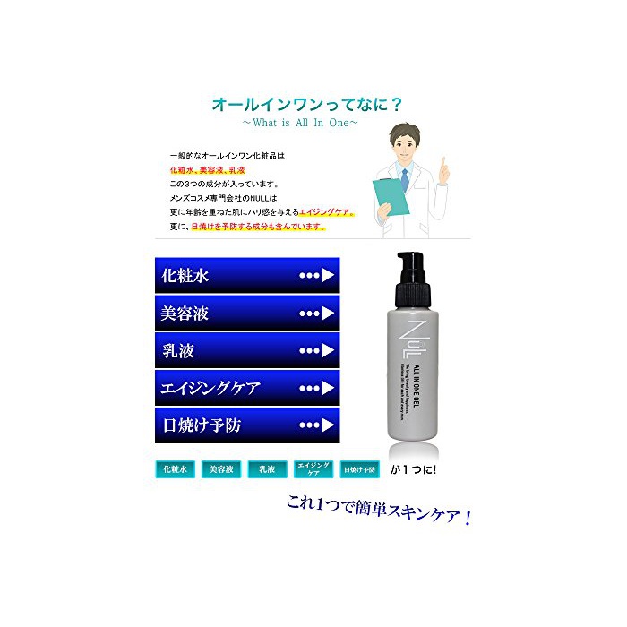 원본상품명: 【メンズ】NULL オ?ルインワン ゲル 化粧水 乳液 美容液 ニキビ予防 がこれ1本!(100g)【日本??生産】