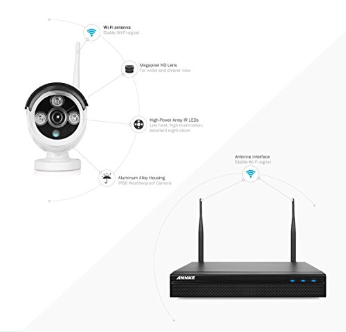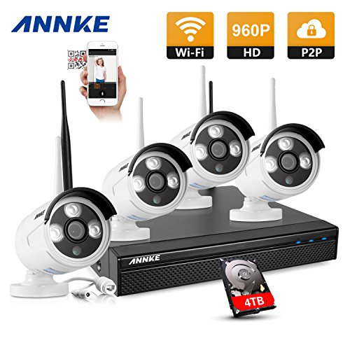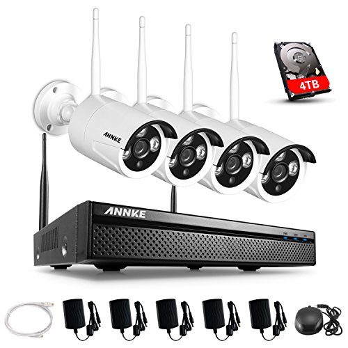 -. Title : ANNKE Wireless Home Security Camera System 1080P NVR with 4TB Hard Drive and (4) 1.3MP Indoor/Outdoor Weatherproof WIFI IP Cameras, 100ft IR Night Vision, Wide Angel of View