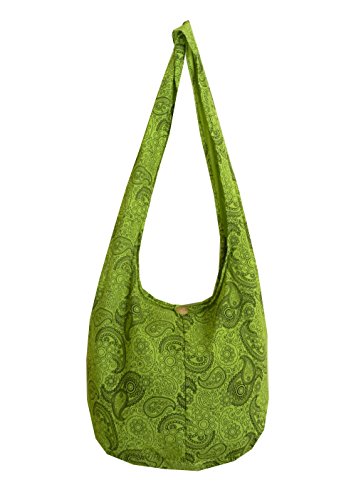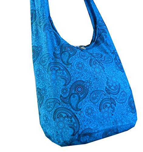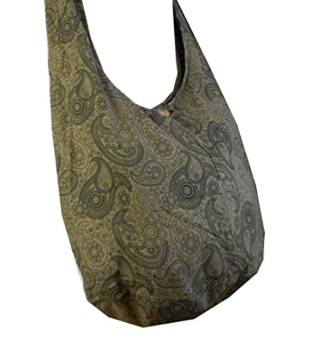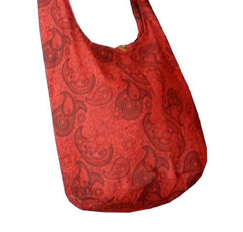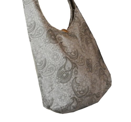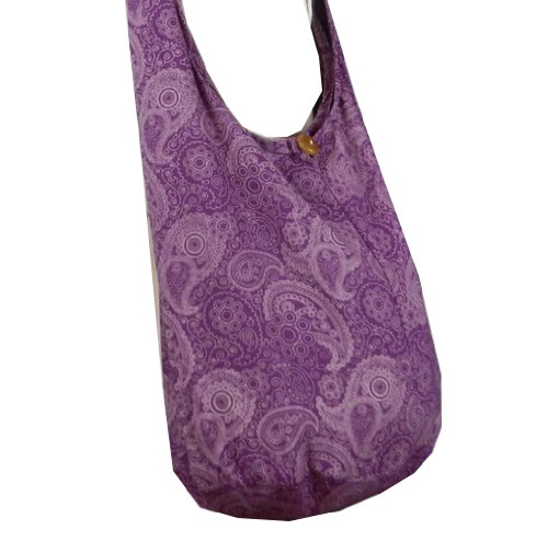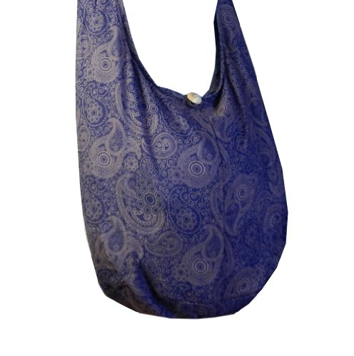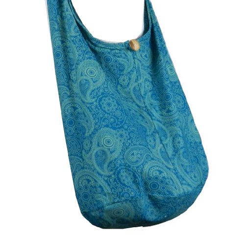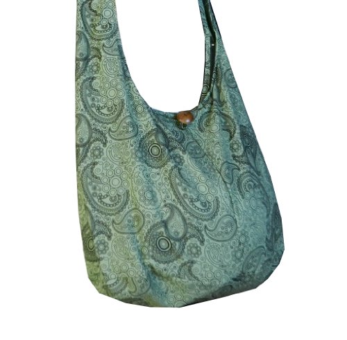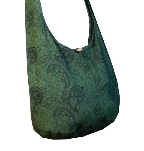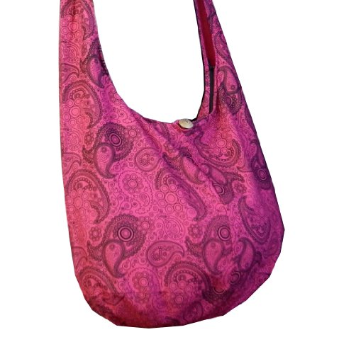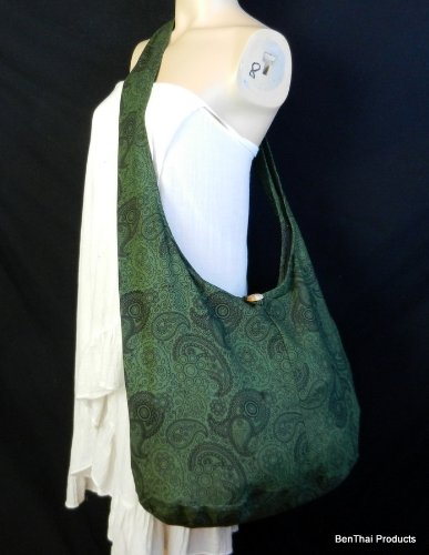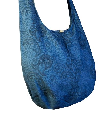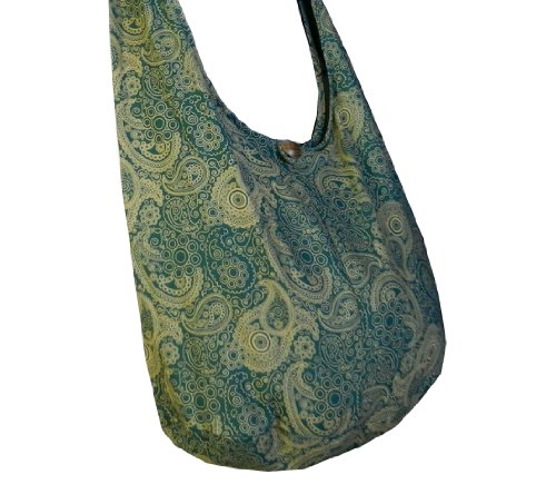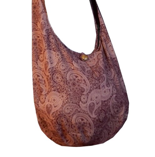 Truly a classic paisley print design, this roomy and durable bag is good for all day use, but has fashionable color to select from as well. Zippered main compartment along with a native wood button clasp, inside zippered pocket and a reinforced base that doesn't intrude on this roomy hobo. 100% cotton fabric construction. Size: Height 14" Length: 20" Depth: 9.5" Drop: 23" shoulder strapFeature