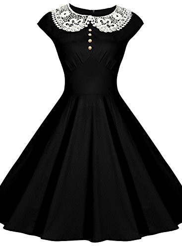*Vintage Peter Pan Collar Cap Sleeve Lace Crochet Women's Dress