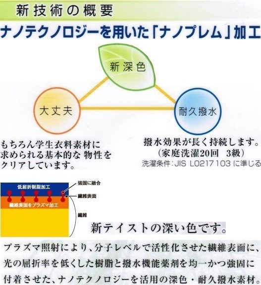東レ新合繊ポリエステル100% 色:黒 プラズマ加工 極黒裏地:東レ・抗菌防臭セベリス生地使用 最高級背抜き本台場仕立て 内ポケット3つ(1つはファスナー付)日本製  日被連標準型学生服マーク入りこちらの商品は定番外商品のため取り寄せ後(1~3営業日後)の発送となります。配達日指定は4日後以降(北海道・東北・沖縄及び離島のお客様は5日後以降)のご指定でお願い致します。全ての衣料品店におきまして、袖詰め等の加工致しました商品は返品や交換を承ることができません。サイズのご指定はお間違えのないようお気をつけくださいませ。詳しくは、PC版・スマホ版で必ずサイズ表等をご確認の上お求めくださいませ。