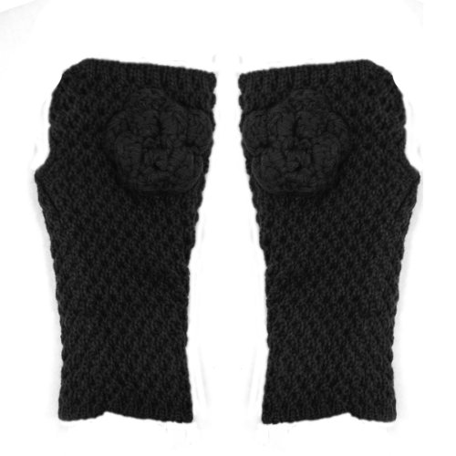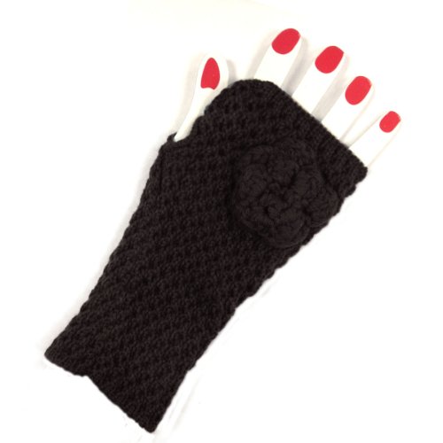 Binding : Apparel Product Description Keep your fingers warm with these fingerless gloves. The gloves feature a flower accent at the back of the hand for extra style. Knitted with a blend of soft acrylic, polyester, and elastic for extra warmth, these gloves cover up to the mid forearm. The perfect winter accessory. 0