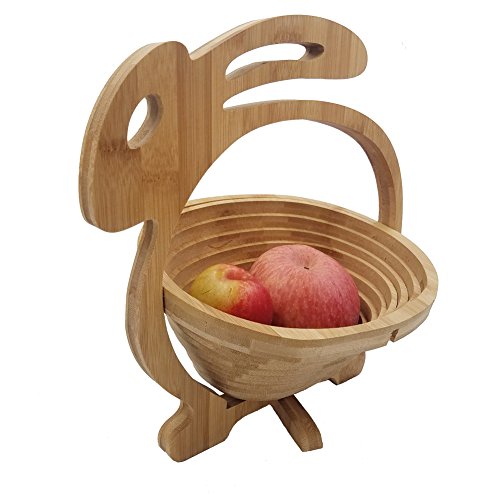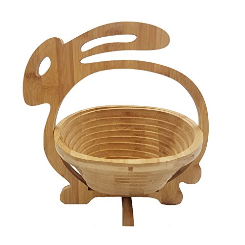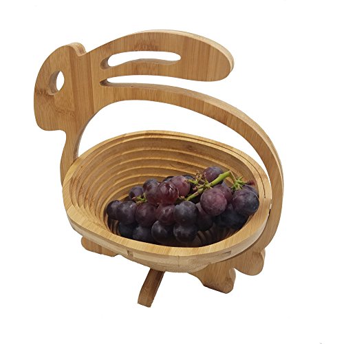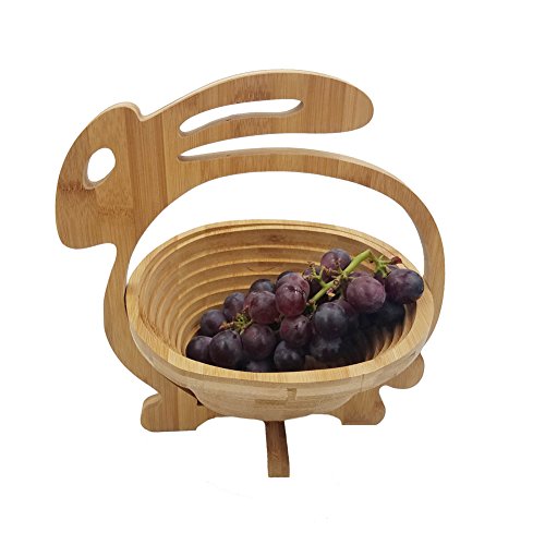 Fruit Basket Storage Holder Collapsible-Rabbit-Shaped Wooden Foldable