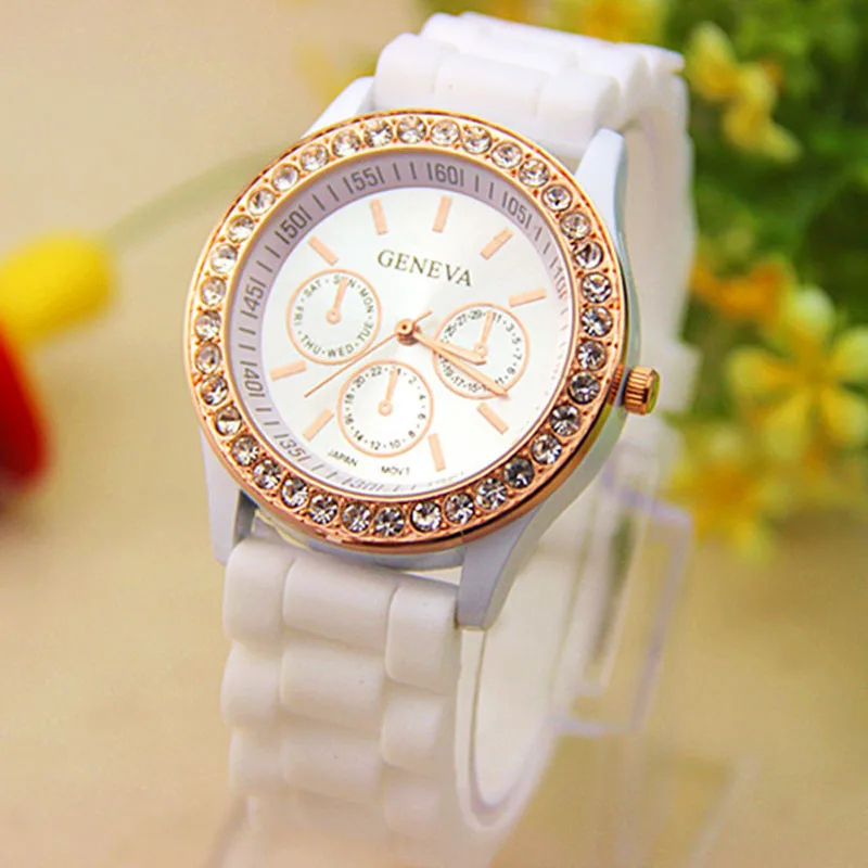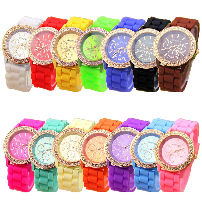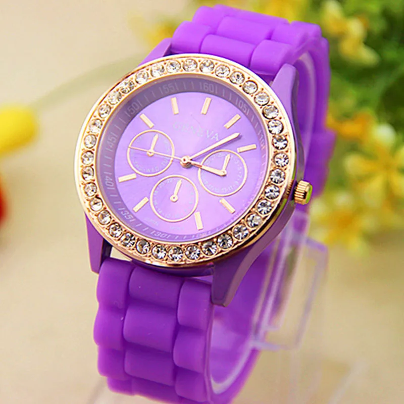 Model Number: Analog Quartz Wrist Watch Jelly Golden Crystal Silicone Watch