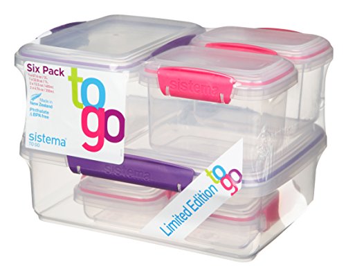 Sistema To Go Collection Lunch Plus Multi Food Storage Containers, Assorted Colors, Set of 6