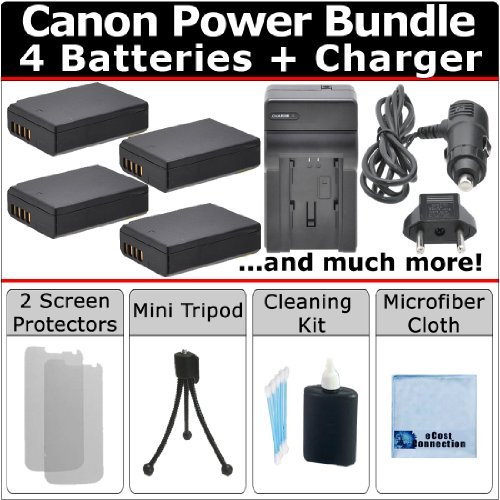 eCost Complete Delux Starter Kit for Canon EOS 1100D Canon EOS Kiss X50 Canon EOS Rebel T3 T5 + 4 LP-E10 Batteries + AC/DC Turbo Charger with Travel Adapter