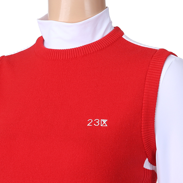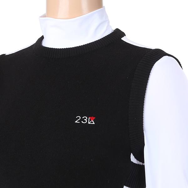 - 컬러, 패턴 블러킹과 절개 라인의 돋보이는 니트 베스트