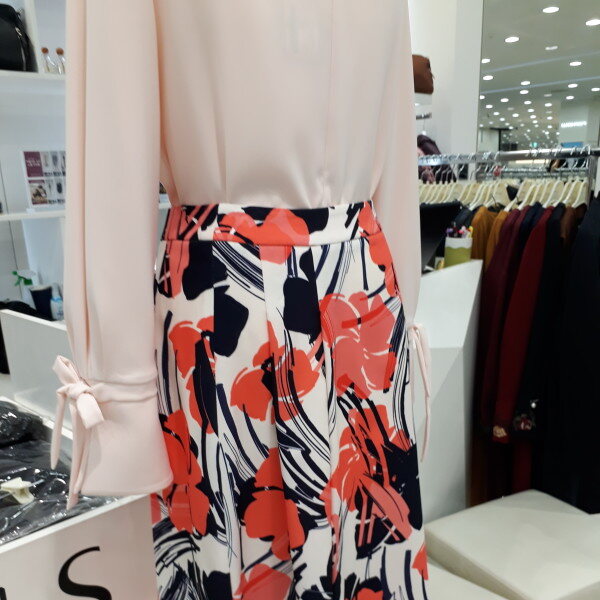 봄을 수놓은듯한 플라워 프린트 플레어 스커트 입니다, 살짝 옆선 주름을 잡아줘 퍼져 보이지 않으면서 자연스런 플레어 연출 해주는 봄 스커트 입니다,
