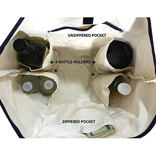 CONVENIENCE : The following are some of the features designed for maximum convenience. 1 Zippered Pocket + 2 Unzippered Pockets, 4 Bottle Holders, Velcro Closure Strip, Optimized Handle Length for both hand and shoulder carry.